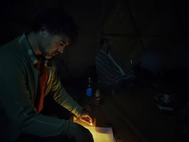 Preparados para entrar en la cueva, tras presentarnos y purificarnos atreves de este fuego sagrado, pasamos a este espacio protegido, donde iniciamos nuestra primera dinámica para adrentranos en nuestro inframundo
